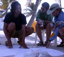 Caribbean lagoon, barrier beach, reef / Snorkel team assessing reef health / Sharing knowledge 1. Field Biology & Field Geology in the Belize Tropical Coastal Ecosystems Session 1: June 20-27, 2004. Participant Fee: $1000 plus airfare to Belize City rendezvous. (Partial need-based fellowship may be available). Credits: 4 graduate-level relicensure hours credits available through Colorado School of Mines (additional $150 fee). 2 sciences graduate credits available through New Mexico Institute of Mining & Technology ($360 fee;fees may rise slightly in 2004). The Belize Coast Ecosystems are composed of coral reefs, lagoons and tropical forests. In this course we will explore through authentic inquiry-based learning-research activities the incredible coral reefs, forests and wetlands of Belize''s Mayan Coast. Our work is done in cooperation with local Mayan non-profit organizations that have been instrumental in the protection and managament of the region. We will explore and investigate the coastal tropical forests. In addition we will also visit remarkable Mayan ruins. We will be tent-camping and staying in basic cabins. Our days are filled with field work, our evenings include lively powerpoint lectures, films, seminars, text-based discussions of inquiry-based scientific learning, traditional ecological knowledge, expeditionary learning, team development models, global environmental change. Facilitators: David Scott Silverberg, Ph.D., Environmental Learning Institute, AZ, silverberg@alum.mit.edu David Vaughan, M.Sc., Waynflete High School, Portland, Maine. Anna Gahl Cole, M.Sc., Jemez High School, New Mexico. Numerous local area experts.